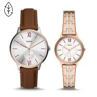 8. His and Hers Three-Hand Brown Leather and Two-Tone Stainless Steel Watch Set - ES5176SET
